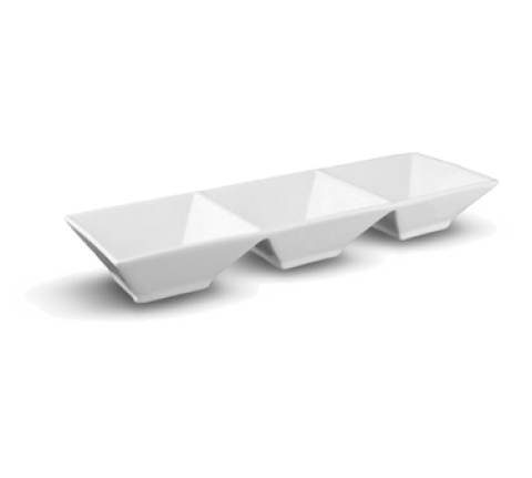 Bowl Platter, 9"W x 3"D x 1-1/4"H, (3) 2 oz.-compartment square wells, rectangular, fully vitrified, microwave & dishwasher safe, lead free, porcelain, Bright White