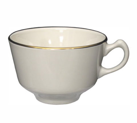 Cup, 7 oz., 3-3/4" dia. x 2-3/8"H, round, with handle, dishwasher safe, lead free, ceramic, American White with gold band, Florentine™