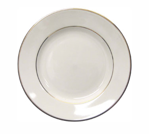 Plate, 10" dia., round, highly polished foot, dishwasher safe, lead free, ceramic, American White with gold band, Florentine™