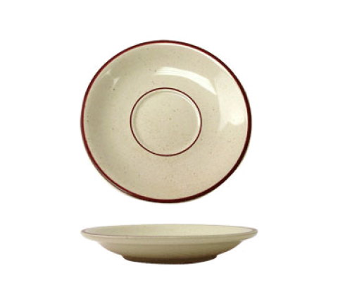 Saucer, 5-1/2" dia., round, narrow rim, microwave & dishwasher safe, lead free, ceramic, American White with Brown speckle & rim, Granada™ (for GR-1/GR-4/GR-17)