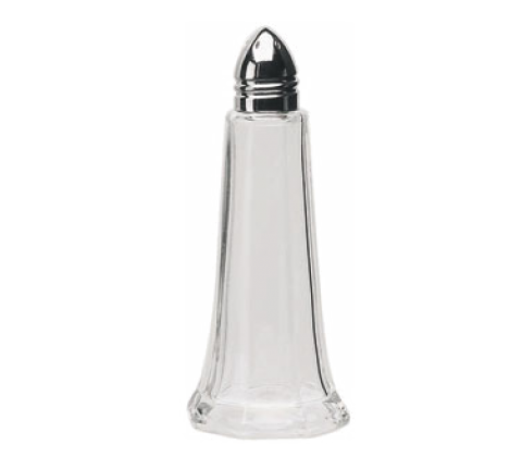 Salt/Pepper Shaker, 1-1/4 oz., 1-3/4" dia. x 4-3/8"H, tower style, stainless steel tops, glass, clear