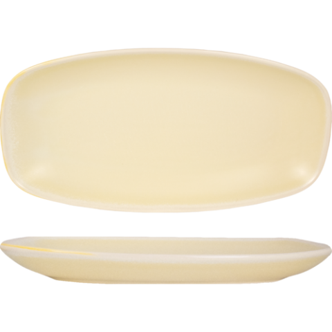 Hearth™ Platter, 9"L x 4-3/8"W, organic rectangle, stoneware fully vitrified, lemon reactive glaze