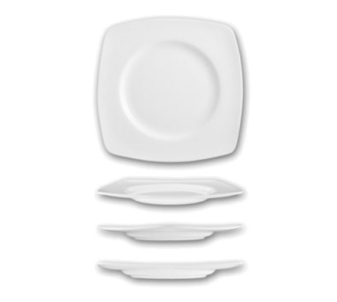 Plate, 10-5/8" x 10-5/8", square, with well, fully vitrified, chip resistant, microwave & dishwasher safe, lead free, "Reflections of Elegance" bone china, white, Iris™