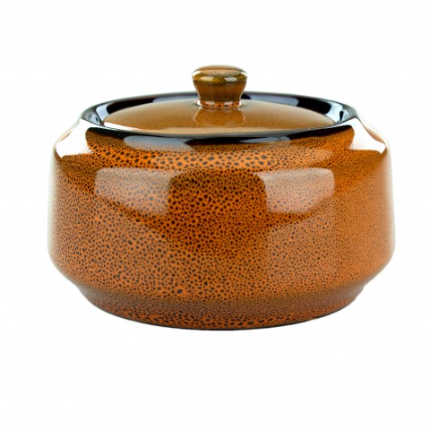 Sugar Container, 13 oz., 4-1/2" top dia. x 3-3/8" H, round, with lid, microwave & dishwasher safe, lead free, fully vitrified stoneware, hand painted reactive glaze finish, Terracotta, Luna™