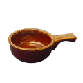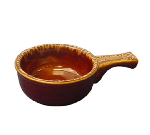 Soup Crock, 12 oz., 5-1/4" dia. x 2-1/4"H, round, 8" with handle, oven/microwave/dishwasher safe, oven safe to 450°F, lead free, stoneware-ceramic, caramel