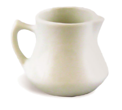Creamer, 4-1/2 oz., 3-1/8" dia. x 2-5/8"H, with handle & spout, fully vitrified, dishwasher safe, lead free, porcelain, European White