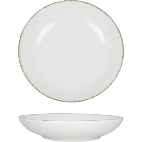 Provincial™ Pasta Bowl, 8" dia. x 1-1/2"H, 22 oz., round, coupe, porcelain with underglaze decoration, European white with green