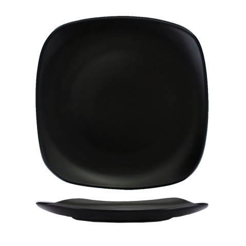 Plate, 11-5/8" x 11-5/8", square, fully vitrified, microwave & dishwasher safe, lead free, porcelain, matte black, Quad™