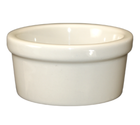 Ramekin, 3-1/2 oz., 3-1/8" dia. x 1-1/2"H, round, smooth, fully vitrified, oven/microwave/dishwasher safe, oven safe to 450°F, lead free, stoneware-ceramic, American White