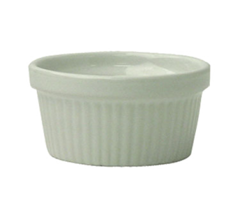 Ramekin, 6 oz., 4" dia. x 1-3/4"H, round, fluted, fully vitrified, oven/microwave/dishwasher safe, oven safe to 450°F, lead free, stoneware, European White