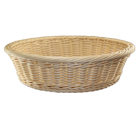 Basket, 12" dia. x 3"H, round, rattan, plastic, cream, Buffet (fits WR-122 & WR-123)
