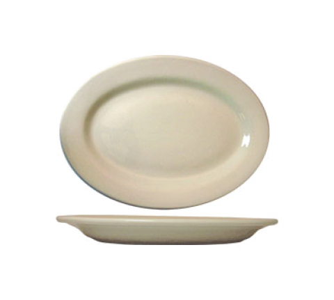 Platter, 13-1/2" x 9-1/2", oval, rolled edge, microwave & dishwasher safe, lead free, ceramic, American White, Roma™