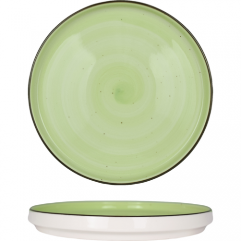 Rotana™ Wall Plate, 8-1/4" dia. x 7/8"H, round, straight edge profile, stoneware fully vitrified with underglaze decoration, lime with brown trim & speckles