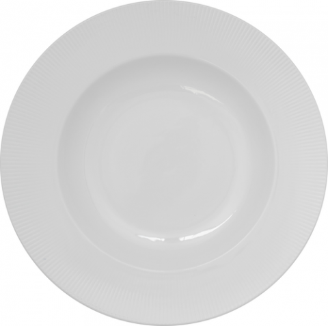 Pasta Bowl, 12"D x 1-5/8"H, 14.5 oz., Extra Wide Patterned Rim, Round, Porcelain Dural, Bright White, Sunburst™ (6 each per case)