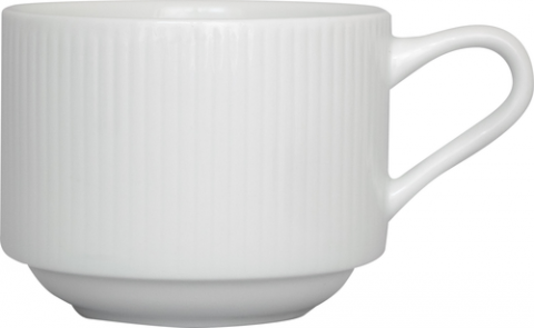 Stacking Cup, 3-3/8"D x 2-1/2"H 8 oz., Round with Handle, Patterned Profil, Fits with: SB-2 Saucer, Porcelain Dural, Bright White, Sunburst™