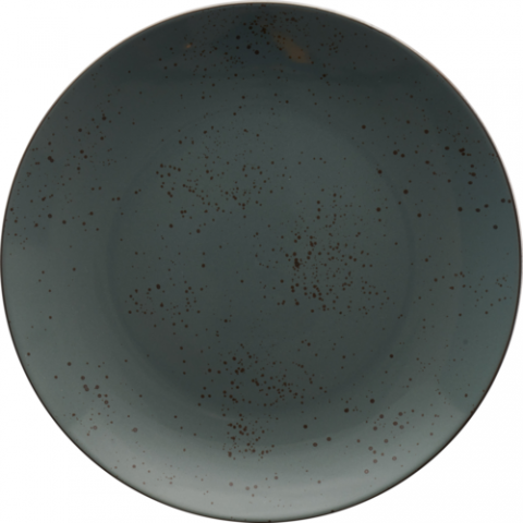 Plate, 10-1/2"D, Round, Stoneware Fully Vitrified with hand painted reactive glaze finish, Lunar Blue with Dark Brown Trim and Speckles, Splash™