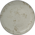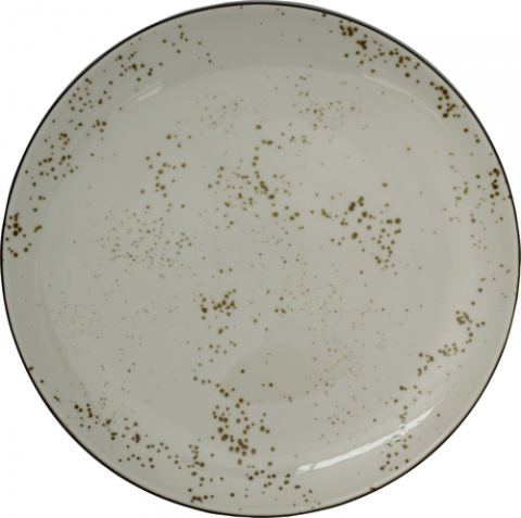 Plate, 12"D, Round, Stoneware Fully Vitrified with hand painted reactive glaze finish, Crème with Dark Brown Trim and Speckles, Splash™