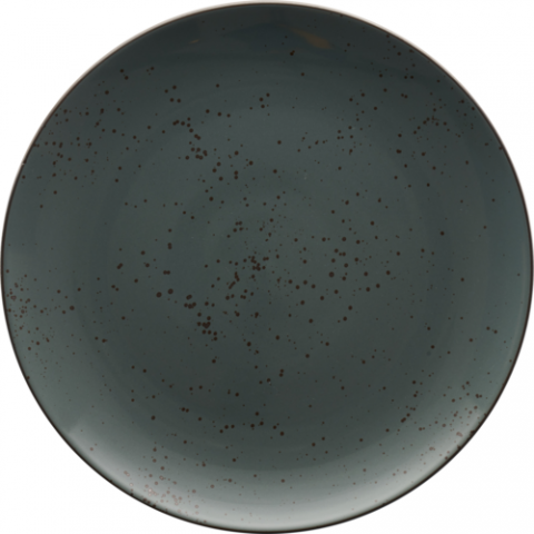 Plate, 12"D, Round, Stoneware Fully Vitrified with hand painted reactive glaze finish, Lunar Blue with Dark Brown Trim and Speckles, Splash™