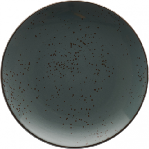 Plate, 7"D, Round, Stoneware Fully Vitrified with hand painted reactive glaze finish, Lunar Blue with Dark Brown Trim and Speckles, Splash™