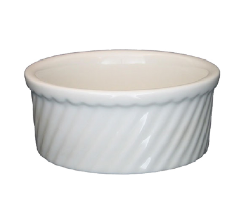 Soufflé Dish, 8 oz., 4-3/8" dia. x 1-7/8"H, round, swirl, fully vitrified, oven/microwave/dishwasher safe, oven safe to 450°F, lead free, porcelain, European White