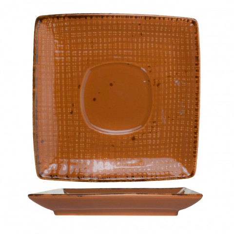Saucer, 5-3/4" x 5-3/4", square, embossed, speckled, fully vitrified, microwave & dishwasher safe, lead free, stoneware, terracotta, Savannahâ„¢