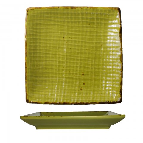 Plate, 8" x 8", square, embossed, speckled, rolled edge, fully vitrified, microwave & dishwasher safe, lead free, stoneware, basil, Savannahâ„¢