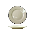 Plate, 9-7/8" dia., round, scalloped edge, microwave & dishwasher safe, lead free, ceramic, American White with black band, Sydney™