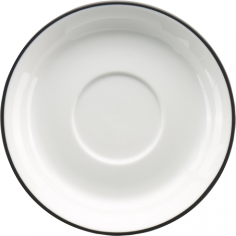 Saucer, 6-1/8"D, Round, Fits with TB-23-BL Stacking Cup, European White with Black, Porcelain with underglaze decoration, Torino™ Bistro