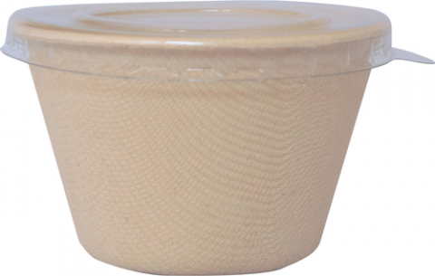Portion Cup, Sugar Cane, natural, 4 oz., Fits TG-B-4-LID, microwave safe, Shown with optional lid (500 each per case) (Promotional NET price, effective 09/01/2025)