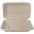 Container, Sugar Cane, natural, hinged lid, rectangular, 1-Compartment, 9”L x 6-3/4”W x 3”H, microwave safe (200 each per case) (Promotional NET price, effective 09/01/2025)