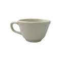 Cup, tall, 7-1/2 oz., 4" dia. x 2-1/2"H, round, with handle, scalloped edge, microwave & dishwasher safe, lead free, ceramic, American White, Victoria™