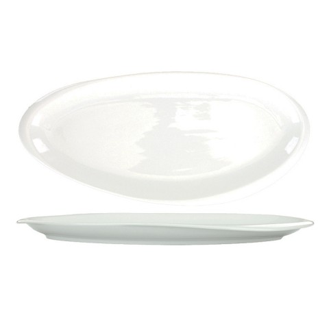 Platter, 17"W x 8"D x 1"H, organic oval, fully vitrified, dishwasher safe, lead free, porcelain, white, Vale™ (6 each per case)