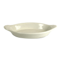 Welsh Rarebit, 8 oz., 8-1/2" x 4-1/8" x 1-1/4"H, oval, two-tone, with handles, fully vitrified, oven/microwave/dishwasher safe, oven safe to 450°F, lead free, stoneware, American White