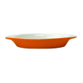 Welsh Rarebit, 8 oz., 8-1/2" x 4-1/8" x 1-1/4"H, oval, two-tone, with handles, fully vitrified, oven/microwave/dishwasher safe, oven safe to 450°F, lead free, stoneware, European White inside/orange outside