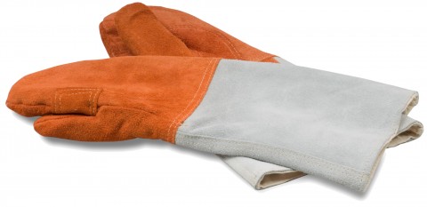 Bakers Gloves, 16"L, pair, protects up to 572°F, leather, orange/gray