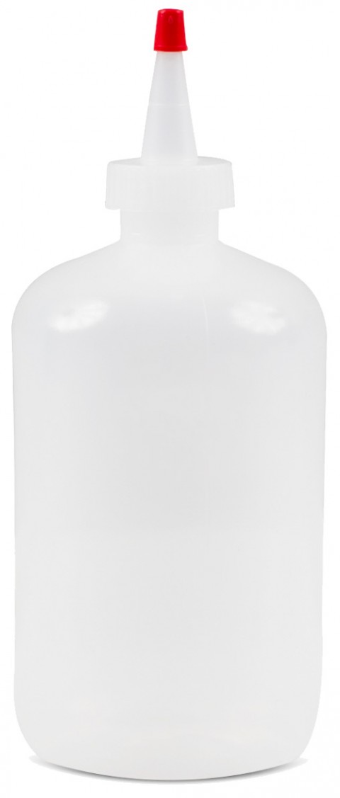 Squeeze Bottle, 16 oz., fine tip, plastic, transparent
