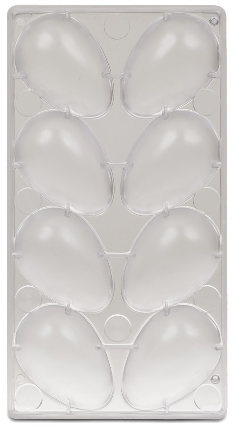 Chocolate Mold, (8) forms, 4"H, half egg shape, rigid, polycarbonate, opaque