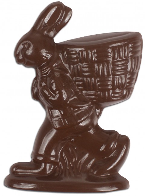 Chocolate Mold, 2 forms, 5-1/2"H, 2 rabbits with basket, rigid, polycarbonate, opaque