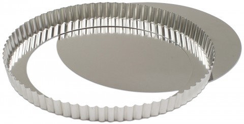 Tart Mold, 11" dia., round, fluted, removable bottom, tinned steel