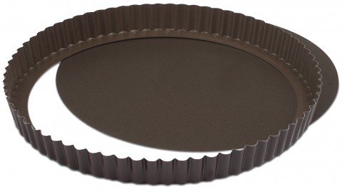 Tart Mold, 11" dia., round, fluted, removable bottom, non-stick, tinned steel, tinned steel