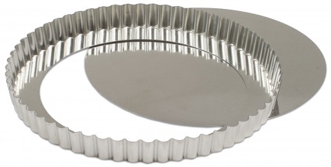 Tart Mold, 9-1/2" dia., round, fluted, removable bottom, tinned steel