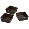 Cake Mold, 4"L x 4"W x 1-3/5"H, square, tinned steel, non-stick, brown