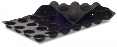 Demarle Flexipan® Mold, 23"L x 15"W, (28) medium hemisphere, 2" dia. x 1-3/16"H with 1-7/10 oz. capacity each, temperature range -40° to 536°F, non-stick, flexible, silicone, black, NSF