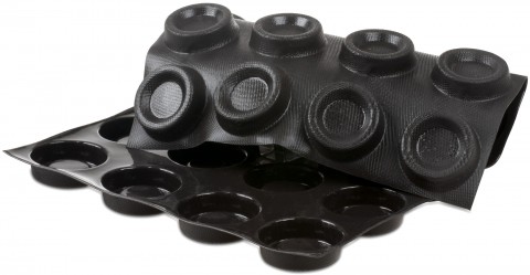 Demarle Flexipan® Mold, 23"L x 15"W, (24) flan, 3-3/16" dia. x 3/4"H with 2-2/5 oz. capacity each, temperature range -40° to 536°F, non-stick, flexible, silicone, black, NSF