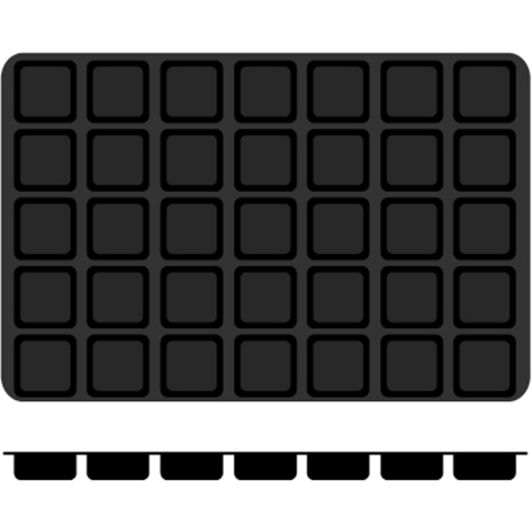 Demarle Flexipan® Mold, 23"L x 15"W, (35) square, 2-3/16" square x 1"H with 2 oz. capacity each, temperature range -40° to 536°F, non-stick, flexible, silicone, black, NSF