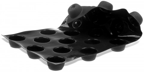 Demarle Flexipan® Mold, 23"L x 15"W, (18) volcano, 2-4/5" dia. x 1-3/8"H with 2-1/4 oz. capacity each, temperature range -40° to 536°F, non-stick, flexible, silicone, black, NSF