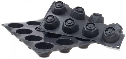 Demarle Flexipat® Mold, 26"L x 18"W, (24) diamond, 3" dia. x 1-1/2"H with 3-3/8 oz. capacity each, temperature range -40°F to 536°F, non-stick, flexible, silicone, black, NSF