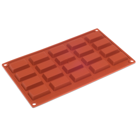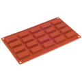 Pavoni Mold, 12"L x 7"W, (20) rectangle, 2"L x 1"W x 3/8"H with 1/5 oz. capacity each, temperature range -10° to +500°F, non-stick, dishwasher safe, flexible, silicone, orange