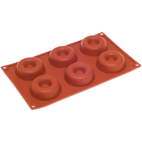 Pavoni Mold, 12"L x 7"W, (6) savarin, 2-1/2" dia. x 7/8"H with 1-1/2 oz. capacity each, temperature range -10° to +500°F, non-stick, dishwasher safe, flexible, silicone, orange
