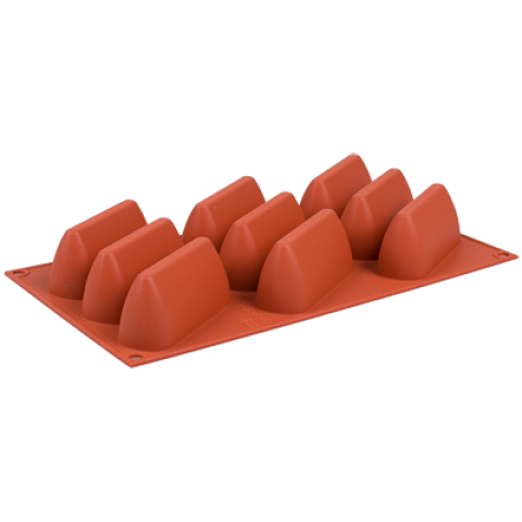 Pavoni Mold, 12"L x 7"W, (9) wedge, 3-3/16"L x 1-1/5"W x 1-1/5"H with 1-1/2 oz. capacity each, temperature range -10° to +500°F, non-stick, dishwasher safe, flexible, silicone, orange